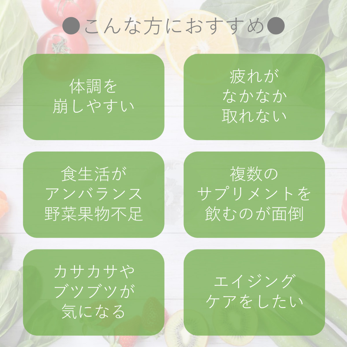 目的に沿った幅広いラインナップが魅力で、チェック項目別に最適なサプリをご提案できます。