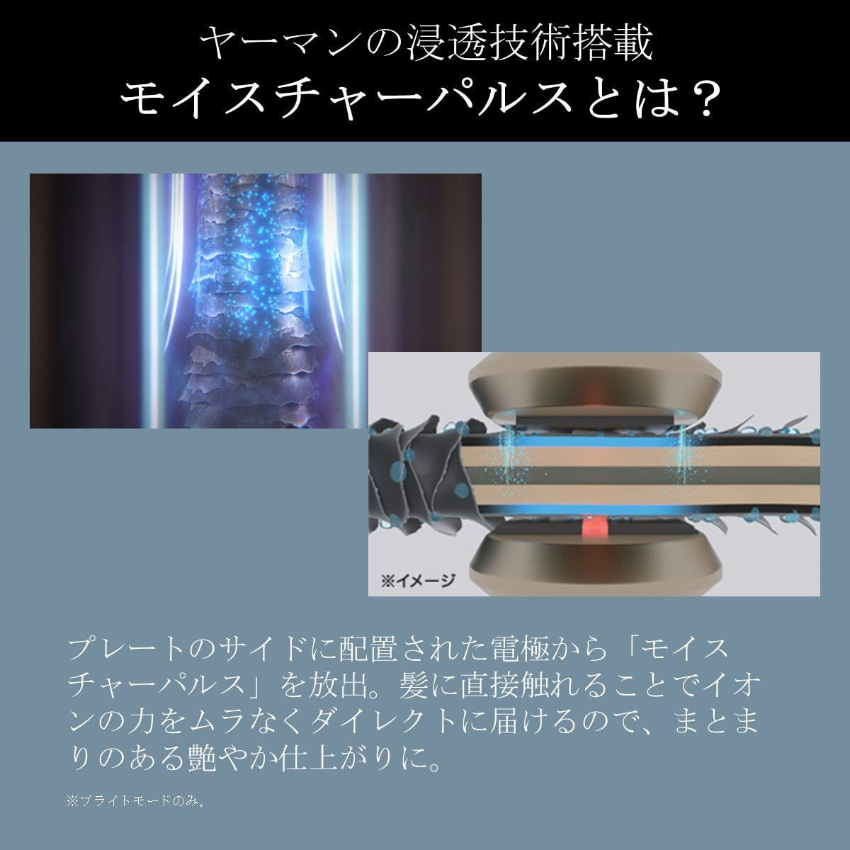 ヤーマン独自技術、美顔器にも搭載される浸透技術「モイスチャーパルス」をカールプレートの両端から放出。