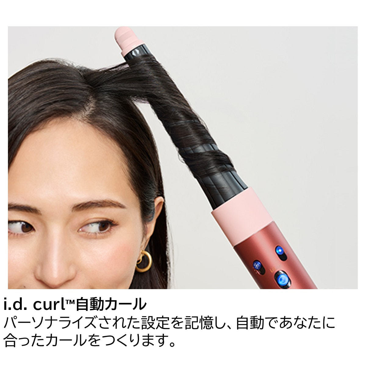 「i.d. curl™」と本体をBluetooth®に接続して連携すれば、本体のボタンを押すだけで、パーソナル設定をもとにして、「風量・風温を調節する」、「髪を巻きつけ、カールを作る」、「固定する」の3ステップが自動で行われます。